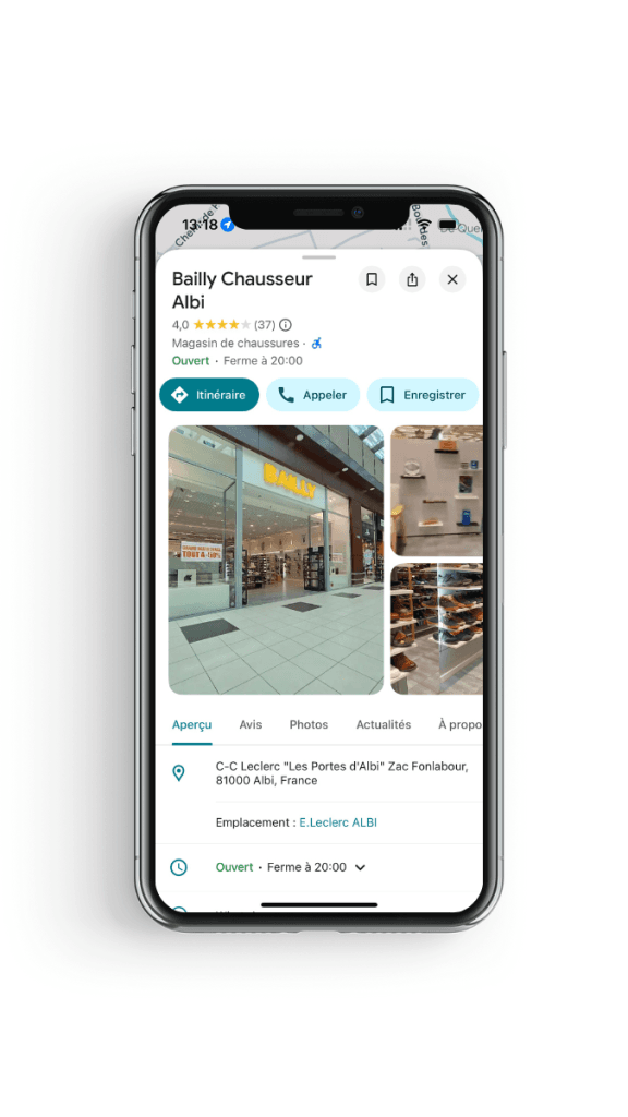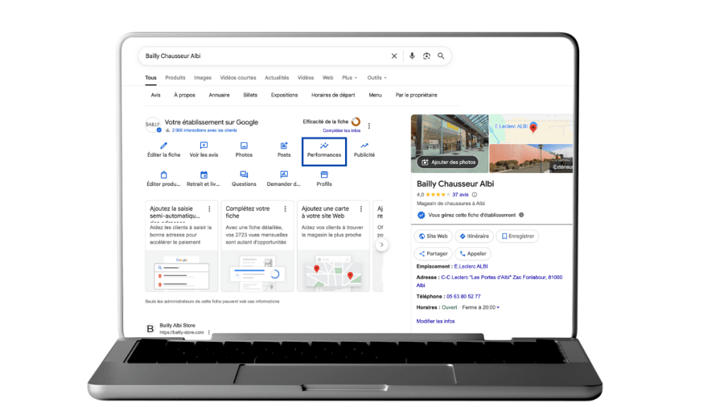 Pour illustrer le pas-à-pas, prenons un exemple concret : Bailly Chausseur, une boutique située à Albi (Tarn), spécialisée dans la vente de chaussures et d’accessoires multi-marques pour hommes, femmes et enfants.