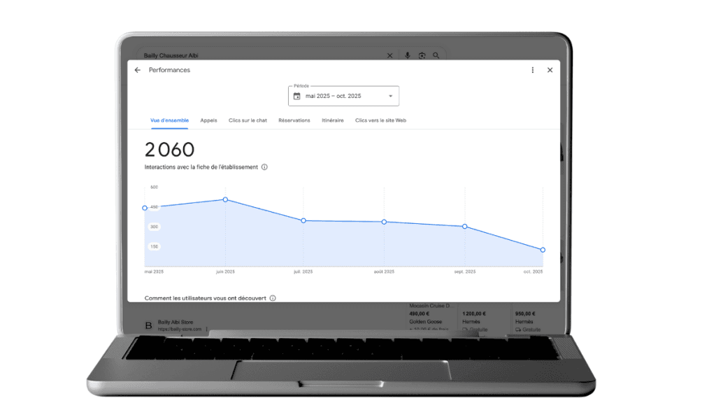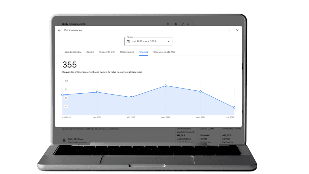 Dans cet article, on vous guide pas à pas pour trouver, analyser et exploiter vos statistiques Google My Business, avec l’exemple concret d’une vraie boutique 👠 pour vous accompagner à chaque étape.