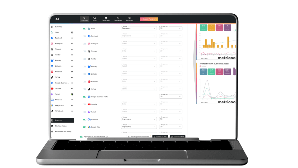 Oubliez les captures d’écran : Metricool génère automatiquement des rapports professionnels à partir de vos statistiques Google My Business.