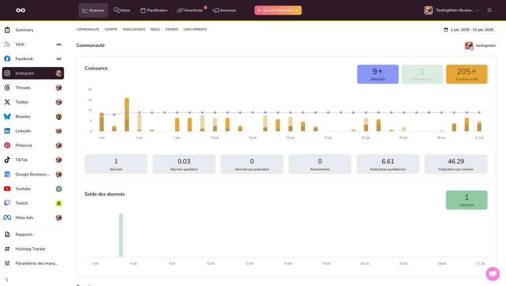 Statistiques Instagram avec Metricool
