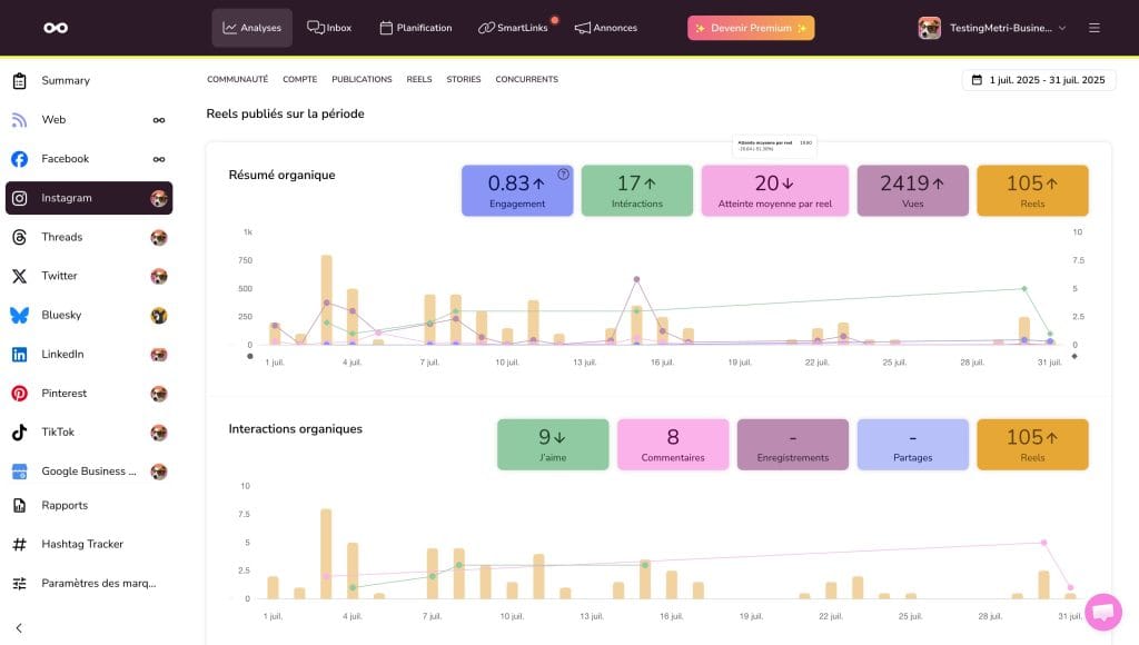 Avec Metricool, vous bénéficiez également de l’analyse de vos Reels téléchargés.