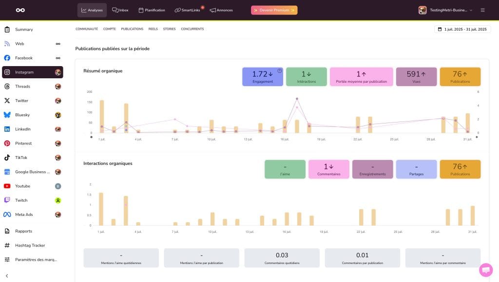 Statistiques Instagram avec Metricool