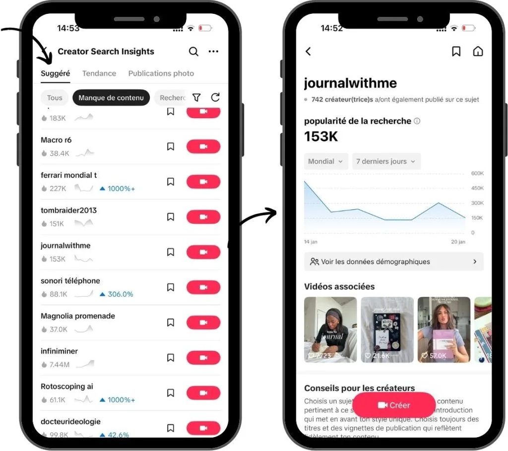 Une section dédiée aux contenus que votre propre audience recherche sur TikTok.