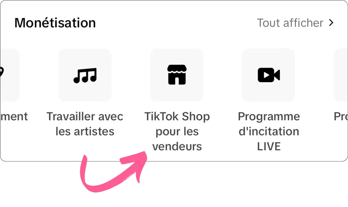 - Et dans l’onglet Monétisation, sélectionner TikTok Shop pour les vendeurs.