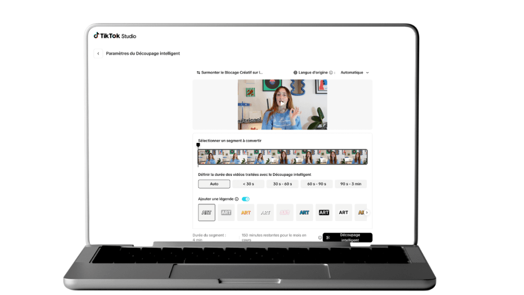 TikTok Smart Split, disponible sur TikTok Studio, se charge de transformer vos vidéos de plus d’une minute (vlog, interview, podcast…) en plusieurs clips prêts à être publiés.