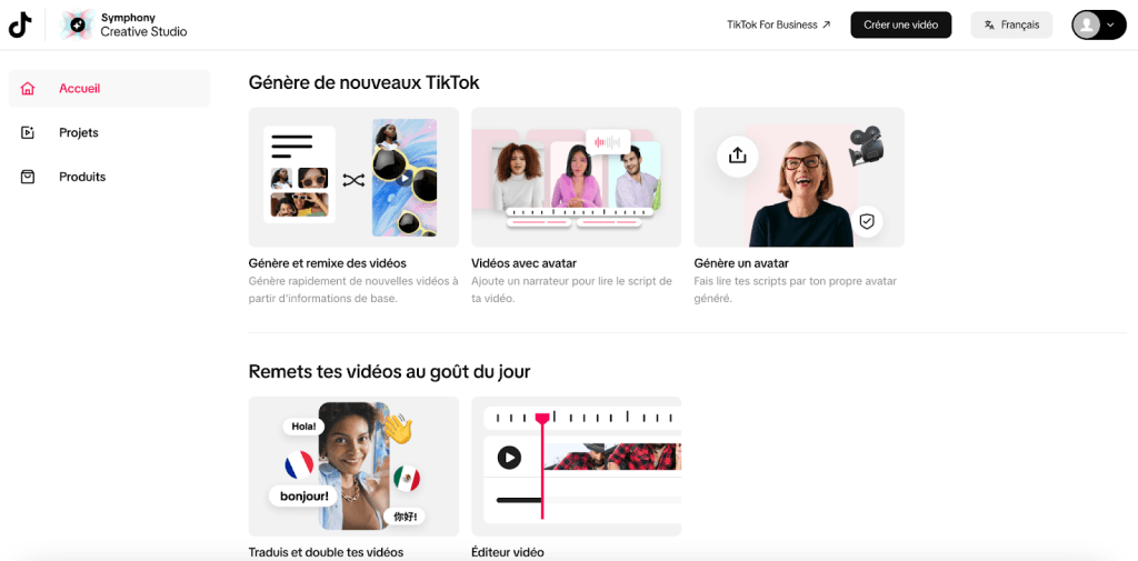 Symphony Creative Studio est un outil de création vidéo alimenté par l’IA, conçu par TikTok pour aider marques, agences et annonceurs à produire rapidement du contenu qui fonctionne. Et cela aussi bien pour les publicités que pour le contenu organique.