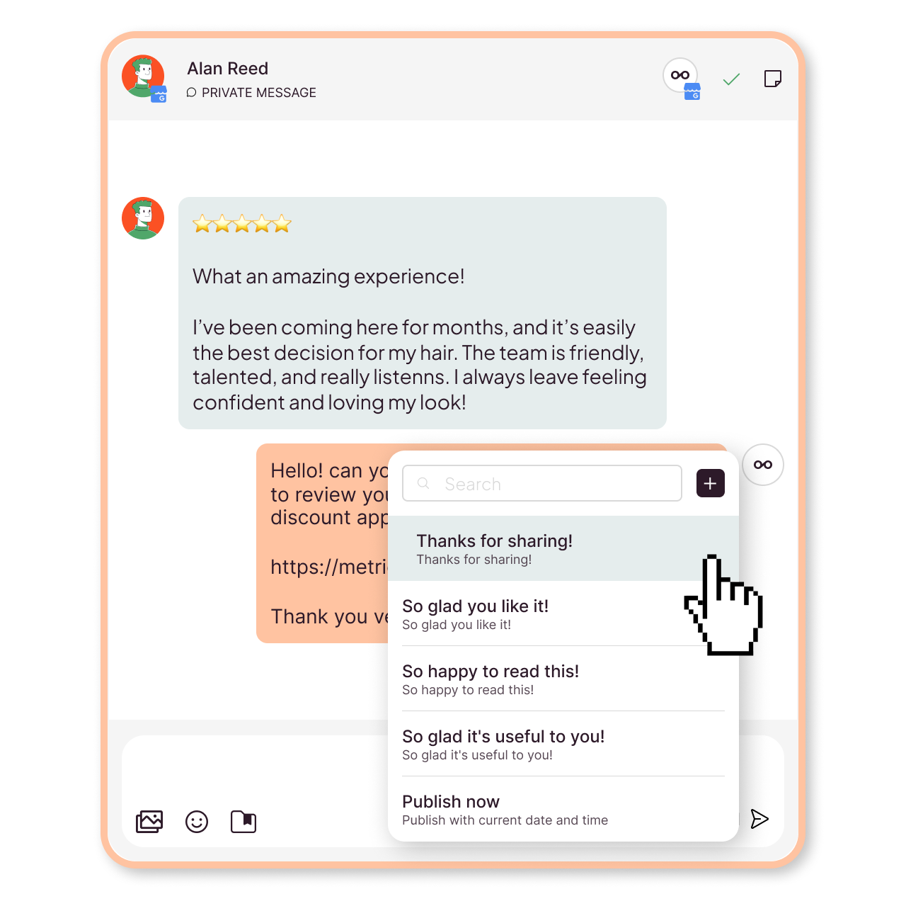 Handle Google reviews, social DMs, and comments from a single, organized Inbox.
