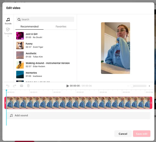 - Edit and customize: Click “Edit video” under the preview to add sounds and templates.