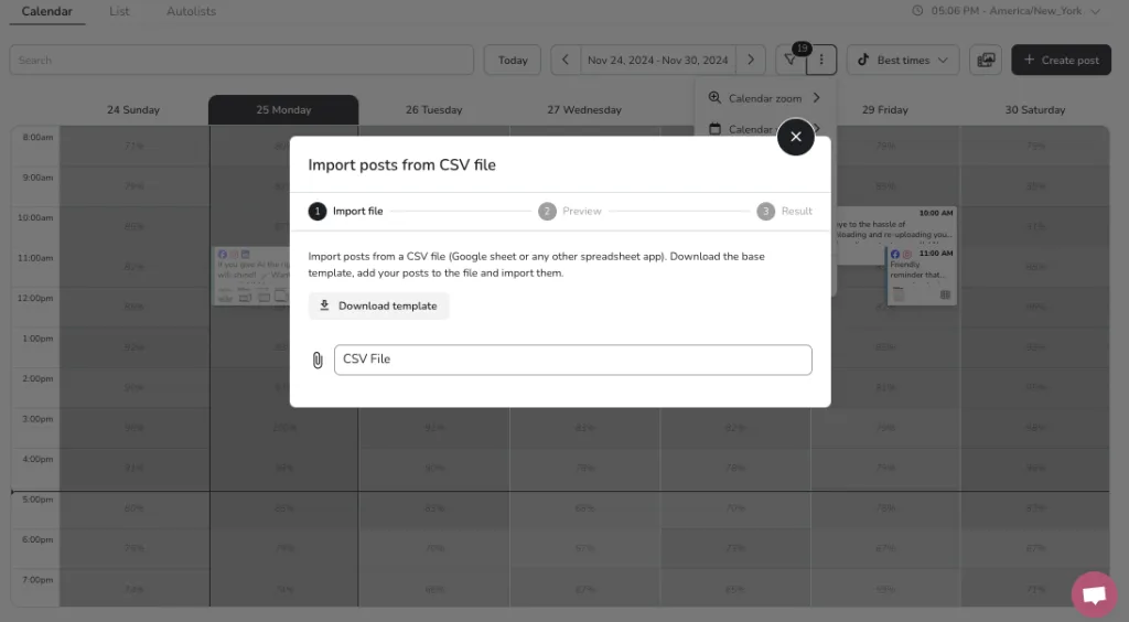 For those looking to streamline their TikTok posting process, Metricool offers a CSV upload feature to bulk-schedule your TikTok posts: