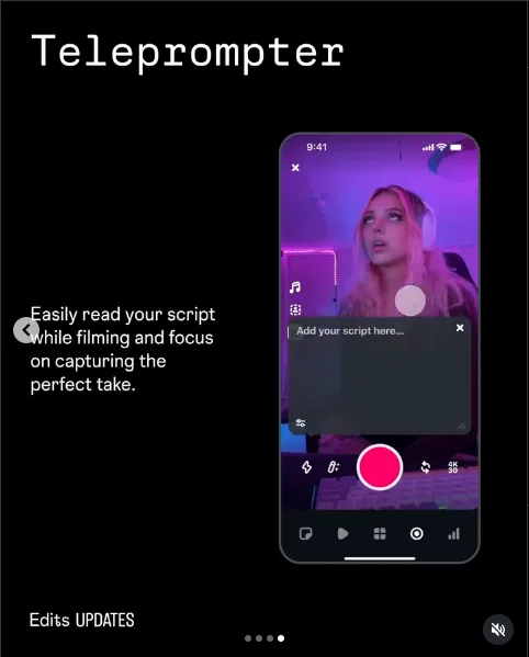 So, what features will you enjoy with the Instagram teleprompter? Well, it’s important to note that our excitement for this addition is all about the convenience it will bring, rather than any super advanced features. With this in mind, here are the main features of the teleprompter feature in the Edits app:
