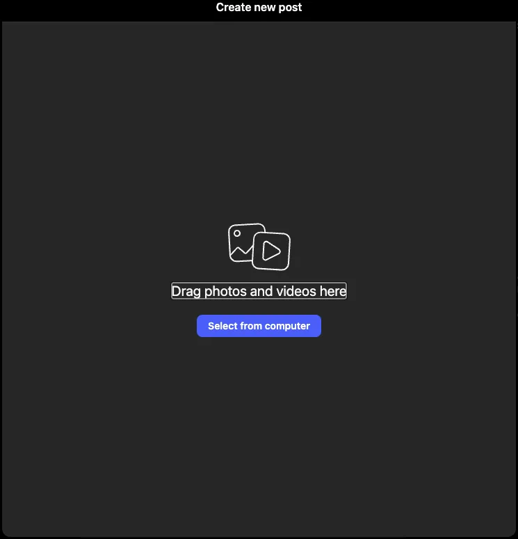 3. Drag and drop the photos or video you want to upload into the box, or find it in your library by clicking “Select from computer”.