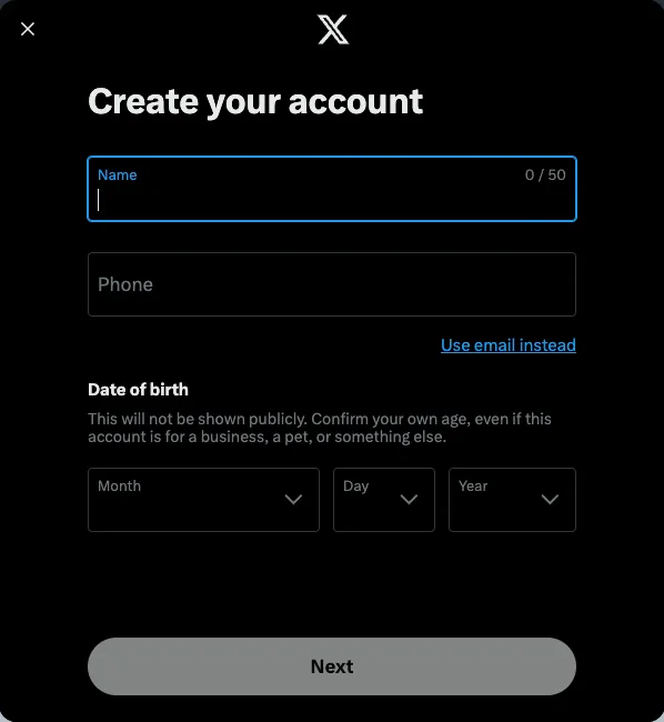 1️⃣ Vai su Twitter/X e clicca su “Registrati”.