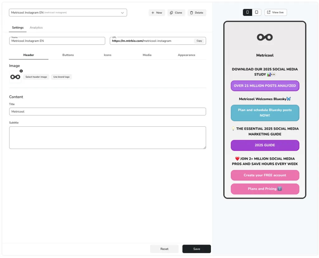 Ti presentiamo gli SmartLinks di Metricool: un unico link per raccogliere tutti gli altri.