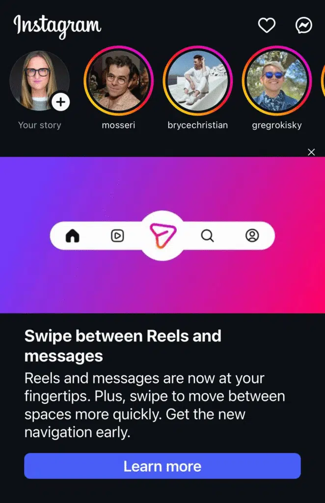 Secondo Instagram, l’obiettivo è “rendere più semplice raggiungere ciò che ami”, ovvero i contenuti e le funzioni più utilizzate: Reels e chat.