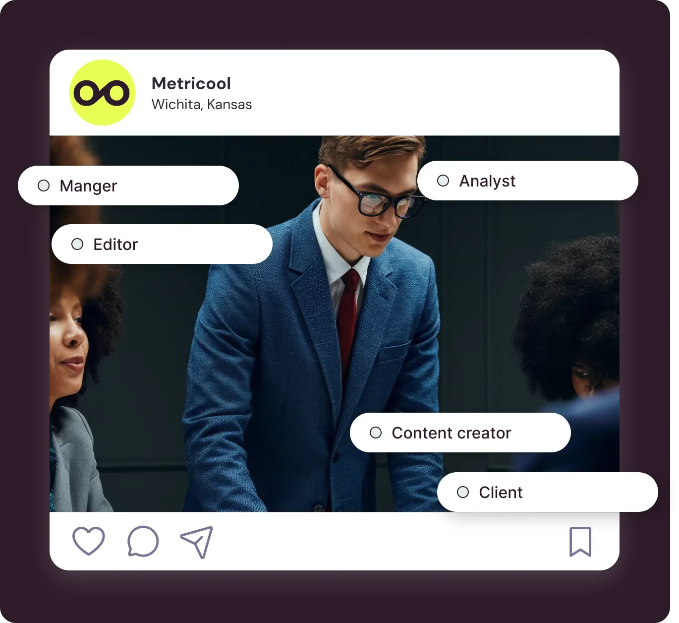 Con Metricool collaborare è semplicissimo e ottimizzi il lavoro del team: assegna ruoli e permessi personalizzati per gestire ogni compito al meglio.