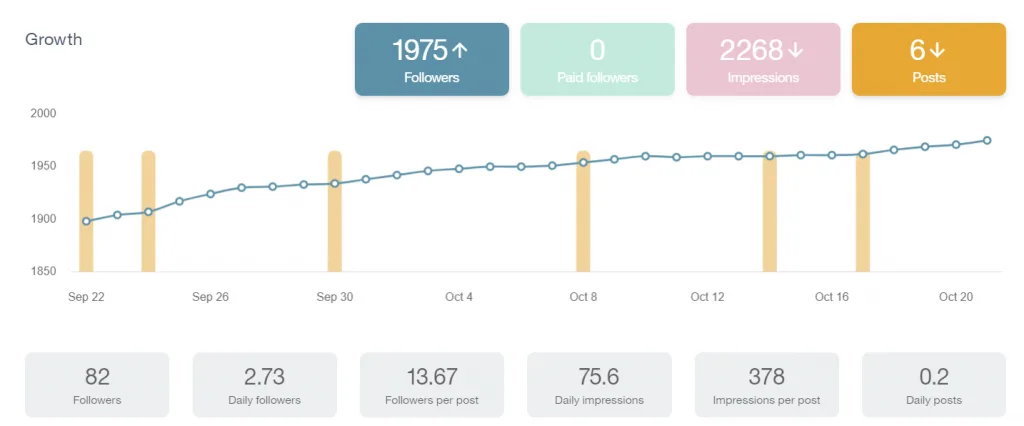 With Metricool you can analyze your followers and the evolution you have had in the last month or the time frame you choose, the impressions, etc.