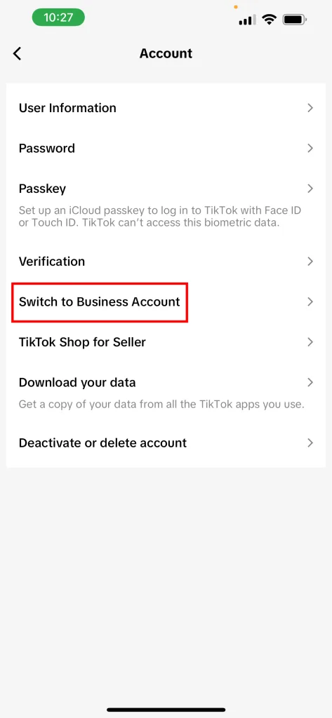 If you have already created your TikTok account but need to switch account types, you can do this directly in the app. To do this: