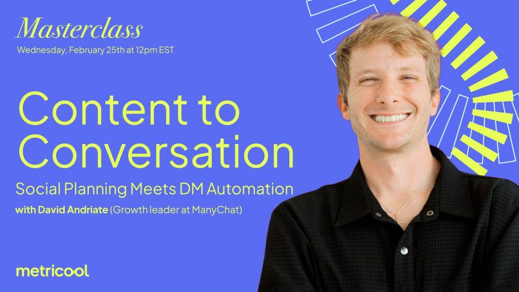 That’s where we come in. Join Metricool and Manychat for a free, live masterclass where you’ll learn how intentional social planning and DM automation work together, so your content doesn’t just perform, it converts.
