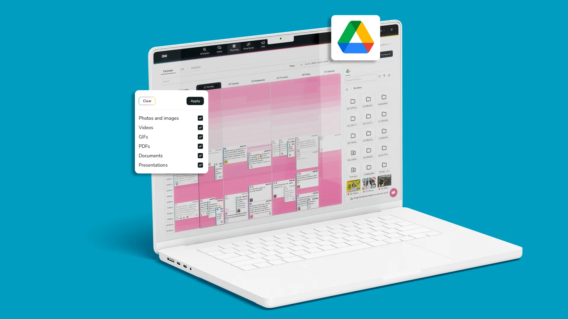 Planning and scheduling social media content can be time-consuming, especially when social media managers have to transfer assets, download them to their desktops, and re-upload them to a social media management platform to schedule. However, this process can be cut in half thanks to Google Drive integrations.