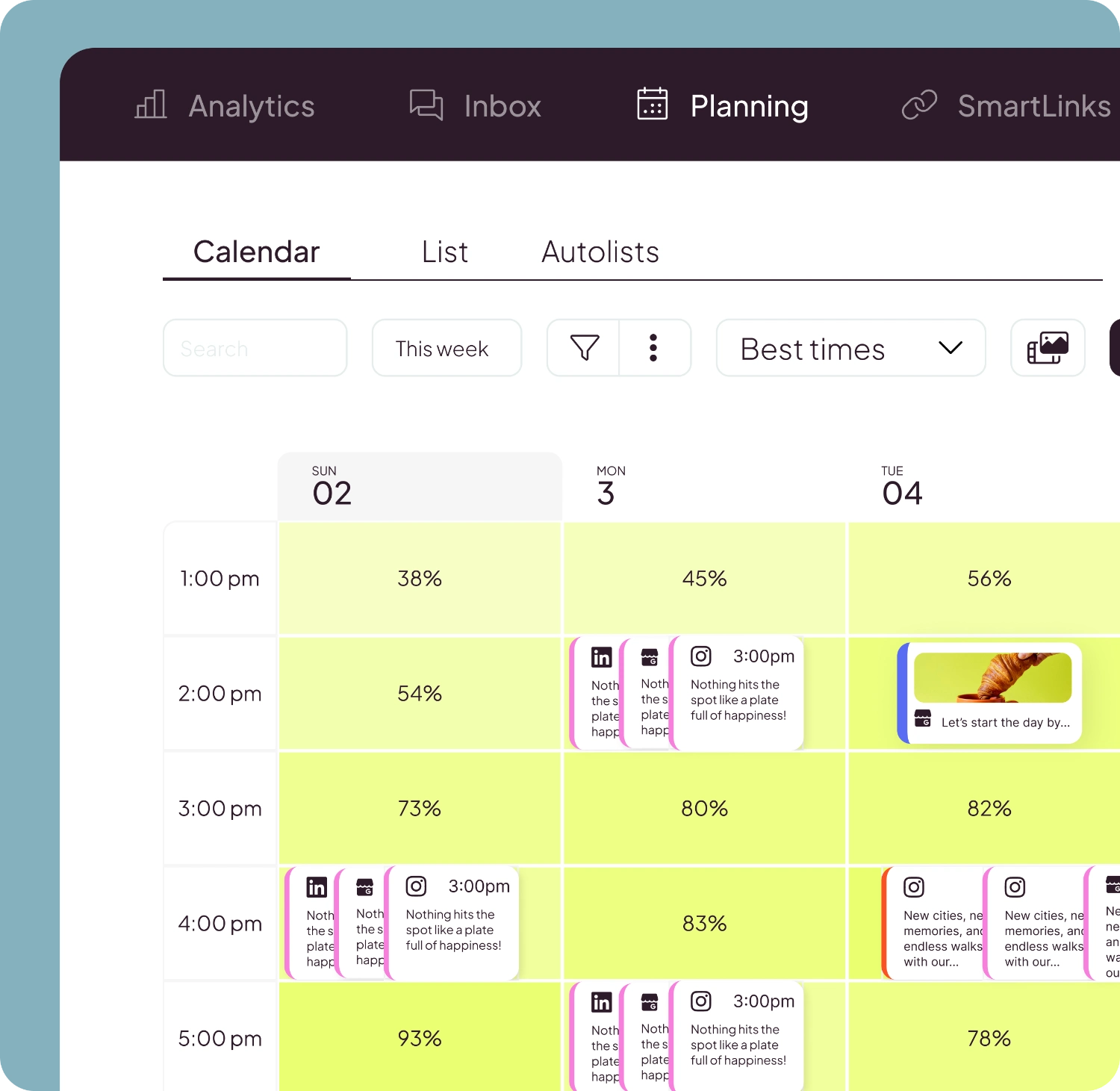 I use Metricool for all of my content scheduling. I realized that if I don’t schedule my content, my day gets away from me as I’m always busy. Scheduling is how I can stay on top of things. And it actually speeds up my whole process. It helps me see what I have coming up, spot any gaps, and reuse content easily.