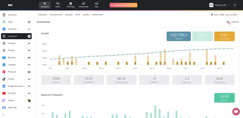 That connection didn’t come with analytics at first (yep, another Meta thingy), but once they enabled it, bam! We activated those analytics on Metricool 🎉