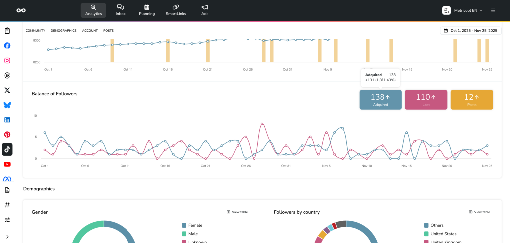 We have new metrics for TikTok Business accounts, followers gained and followers lost. TikTok has been providing this data since September 29.