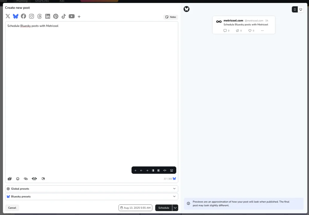 How to Schedule Bluesky Social Posts with Metricool