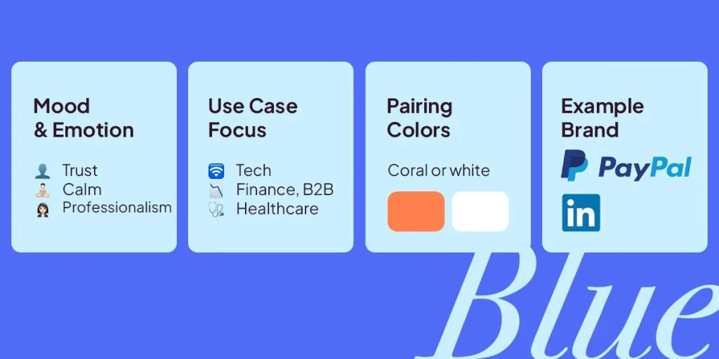 - Blue: Trust and calm in the West; spirituality or mourning in other regions.
