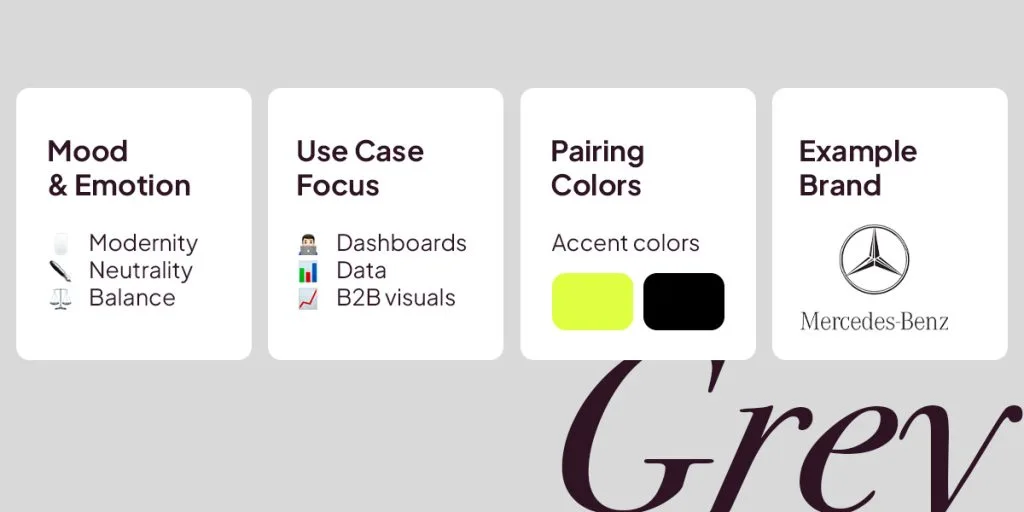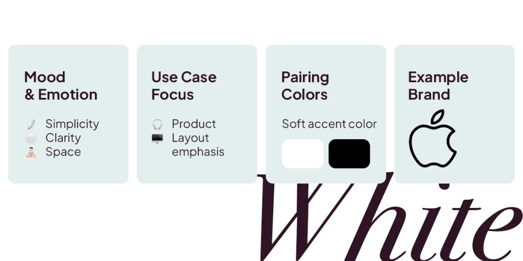 - Neutrals: One or two colors for backgrounds, typography, and supporting elements (white, off-white, grey, beige).