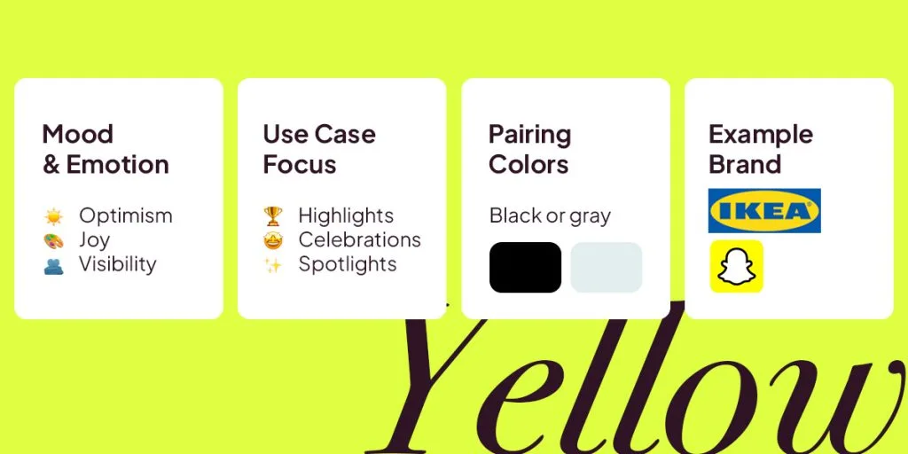 Yellow makes content feel bright and open. It draws the eye quickly, which can help important details stand out.