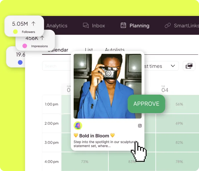 Map every drop (and breathe)From sneak-peek Stories to full campaign films, stack content neatly in one calendar.