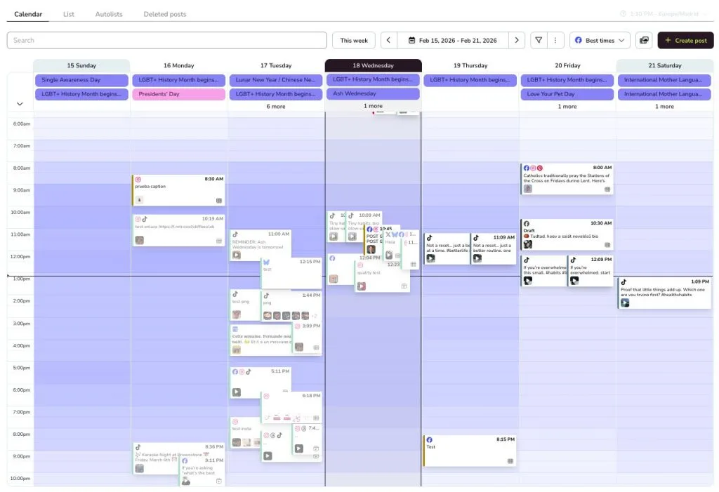 With Metricool, you can plan and schedule posts across platforms from one visual view. That means you can see what’s going out, when, and where without opening multiple tabs or apps.