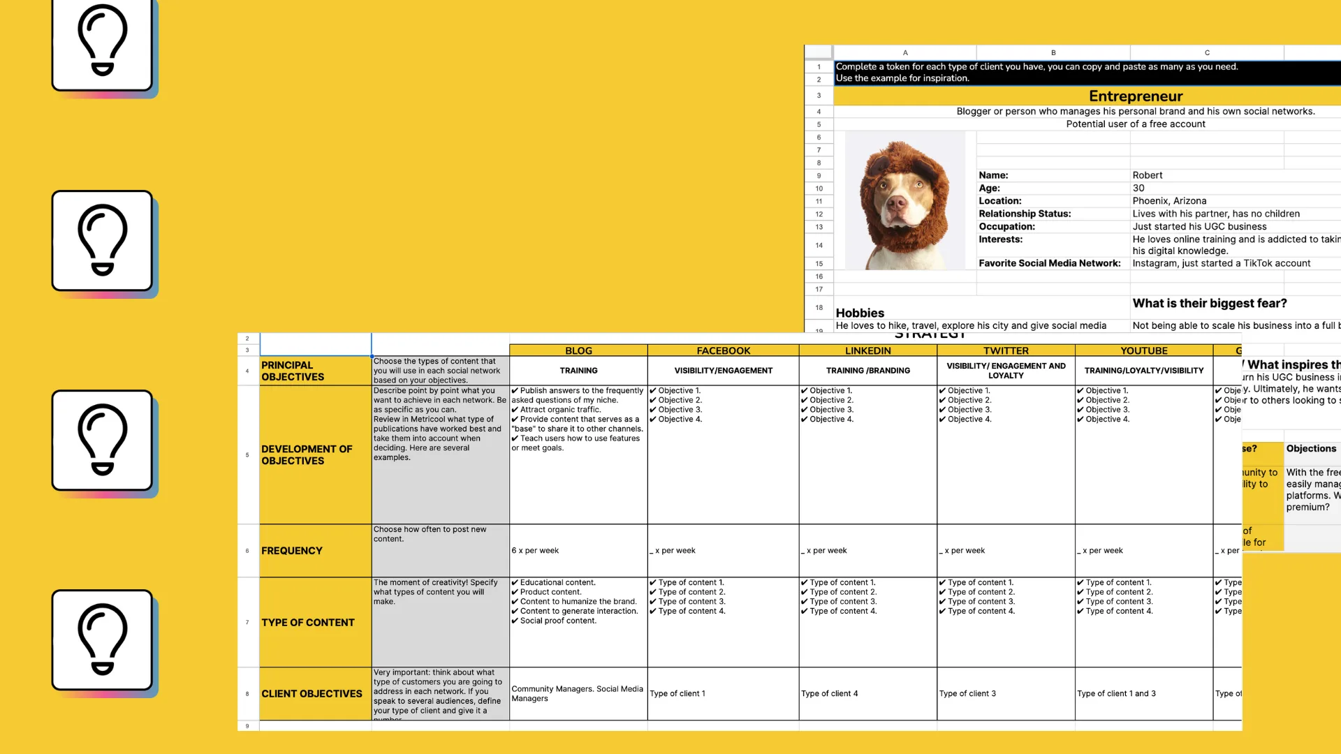 - Define Your Audience – Use the CLIENTS tab to document key details about your target audience and buyer personas.