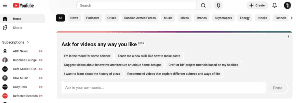 YouTube has entered the chat as well with its “Your Custom Feed” test, adding an AI-twist to it all by introducing a conversational panel where users can describe their interests in their own words. Just type a simple prompt, and your Home Feed adapts on the spot.