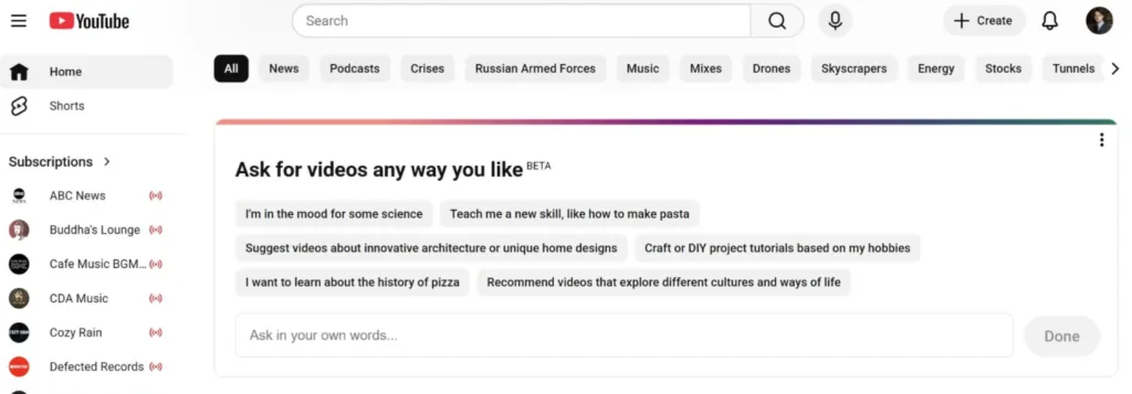 YouTube has entered the chat as well with its “Your Custom Feed” test, adding an AI-twist to it all by introducing a conversational panel where users can describe their interests in their own words. Just type a simple prompt, and your Home Feed adapts on the spot.