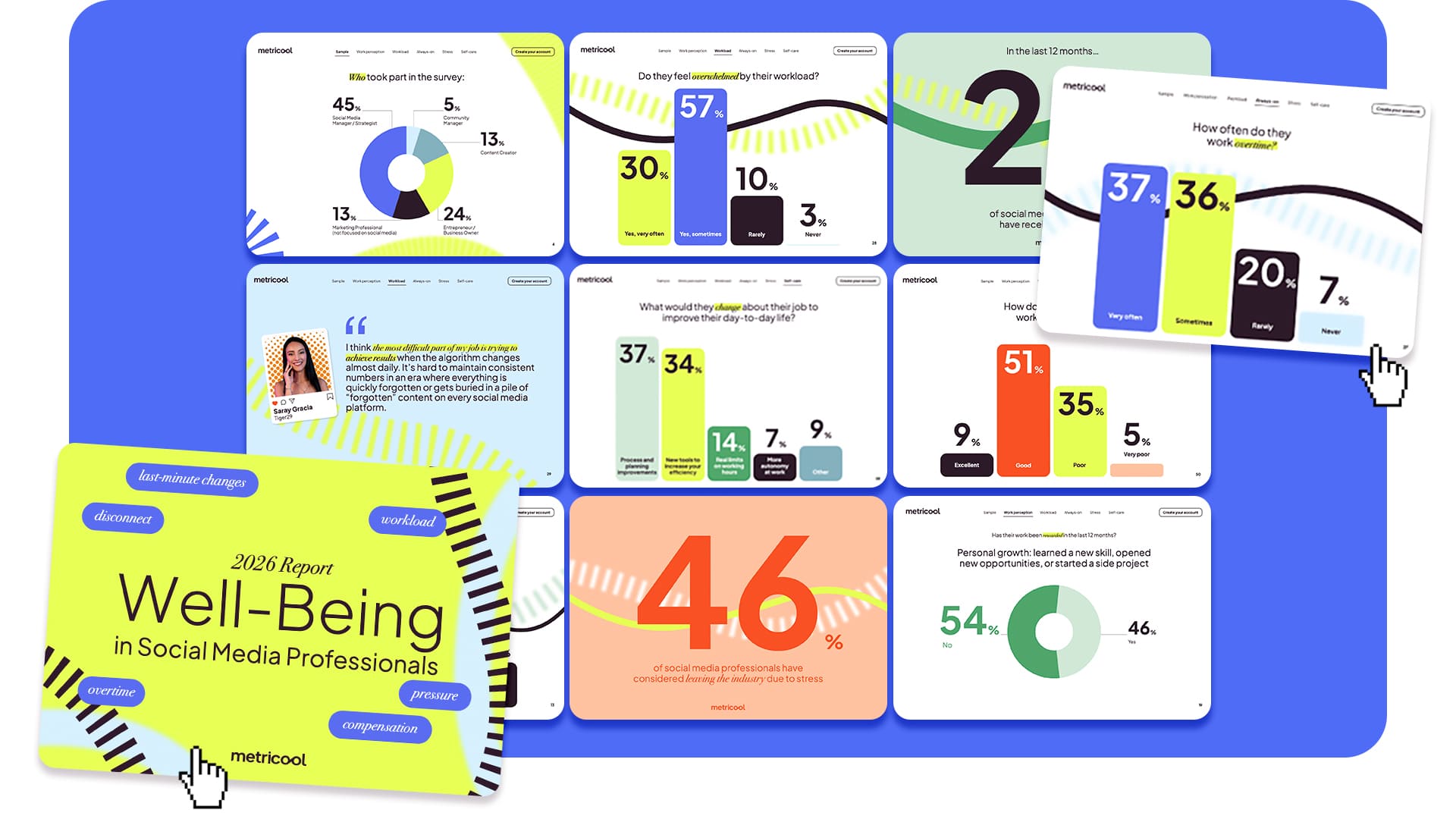 60 pages of data on the workload, pressures, habits, and realities of social media work in 2026, built from 1,000+ surveys across freelancers, agencies, and small businesses.