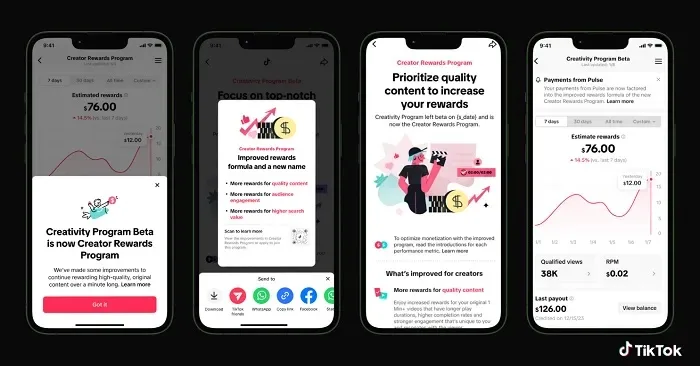 Originally known as the Creator Fund, TikTok revamped its Creator rewards program. During its remodel, the program was temporarily called the ‘Creativity Program Beta’ before switching to the Creator Rewards Program. This was an initiative to improve its monetization action by rewarding creators for original, authentic content.