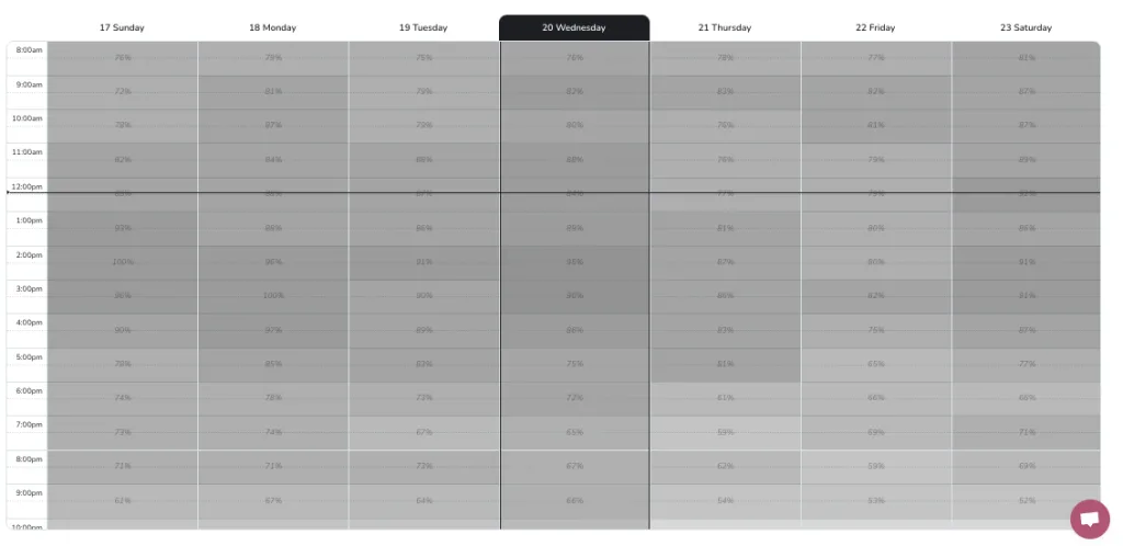 Toggle on exact percentages to track when the majority of your followers are active, to schedule content at optimal times.