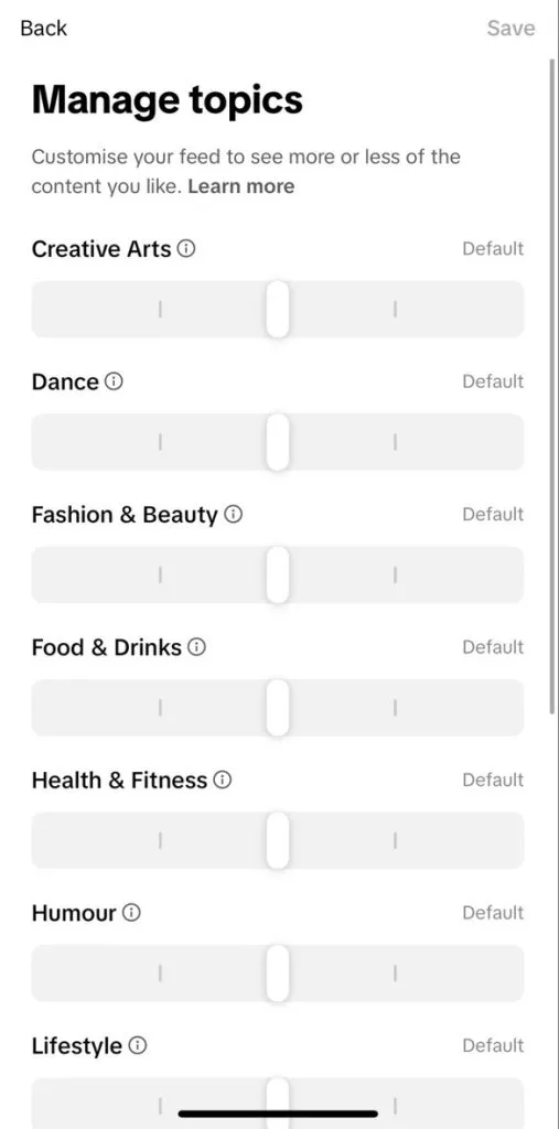 | Content Preferences | Settings > Content Preferences > Refresh FYP | Resets the recommendation engine. |