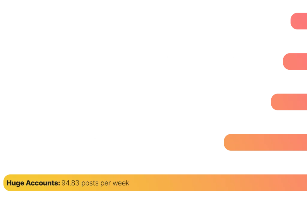 However, if we zoom in on the data by account size, the accounts with the most followers post the most per week. With an average of almost 95 posts weekly, they break away from the others.